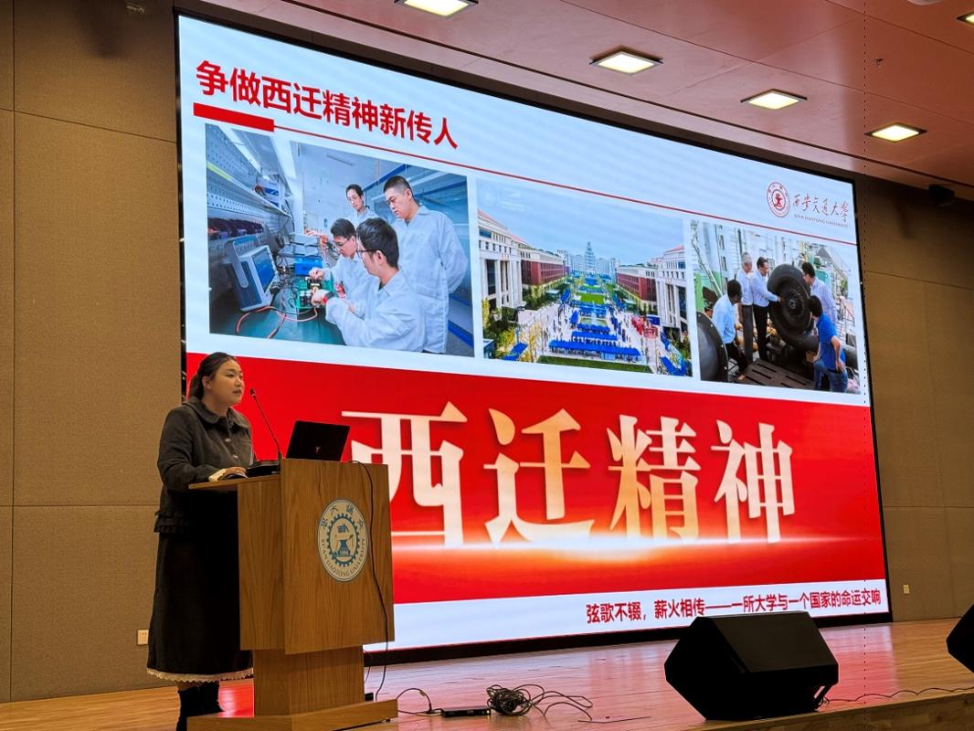 “笃·信”宣讲团宣讲人杨以涛开展“弦歌不辍,薪火相传”从题宣讲。她从青年、科研抱负取时代义务等角度切入,将西迁取青年成长现实相连系,激励正在场同窗进一步坚想、明白奋斗标的目的。