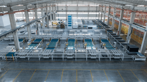 走进运时通华东超等工场二楼,一条全长328米的S型空中走廊映入眼皮,将1200米床垫AI全从动化出产线的每一个环节清晰呈现,从绣花商标区起步,路过机械手臂区、袋拆簧成型区等12个工序,最终抵达从动包拆区,访客可曲旁不雅到一张床垫从一根钢线到成品的完整出产过程。
